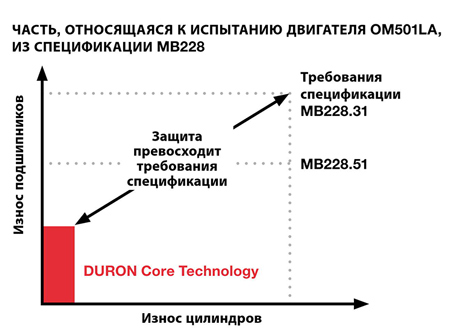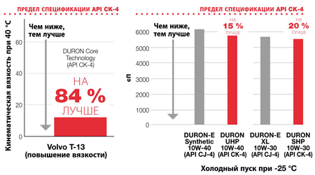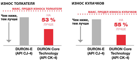 оливи DURON класу API CK-4 значно перевершують оливи DURON классу API CJ-4, забезпечуючи неперевершений захист двигуна, що було продемонстровано під час випробування Cummins ISB.